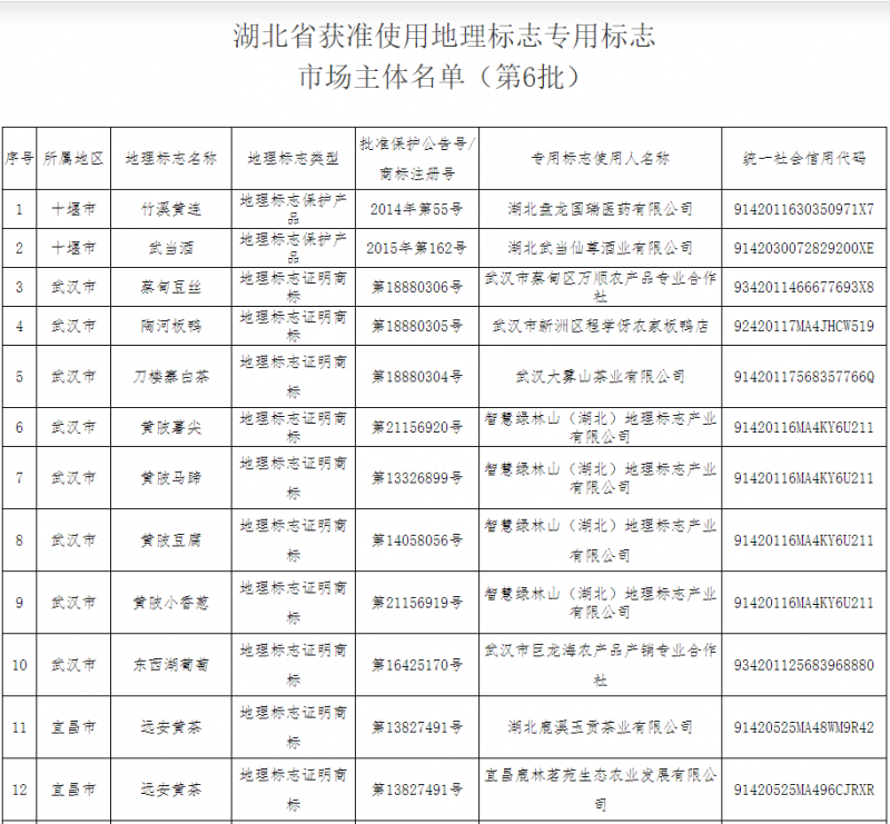 附件:湖北省獲準(zhǔn)使用地理標(biāo)志專用標(biāo)志市場主體名單(第6批)